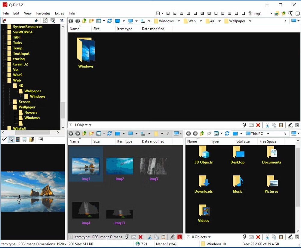 4. Q-Dir은 Windows 사용자를 위한 다중 창 파일 탐색기 프로그램입니다. 한 화면에 2개, 3개, 혹은 4개의 창을 동시에 열어 파일을 더 효율적으로 관리할 수 있습니다. 드래그 앤 드롭으로 파일 이동이 간편하며, 여러 드라이브나 폴더 간 작업이 훨씬 수월합니다.