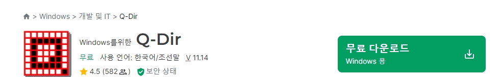3. 다운로드 버튼을 클릭하면 설치 파일이 다운로드됩니다. Q-Dir은 설치 과정이 간단하며, 다운로드 후 바로 실행하거나 USB 스틱에서 실행할 수도 있어 설치 없이도 사용할 수 있는 장점이 있습니다.