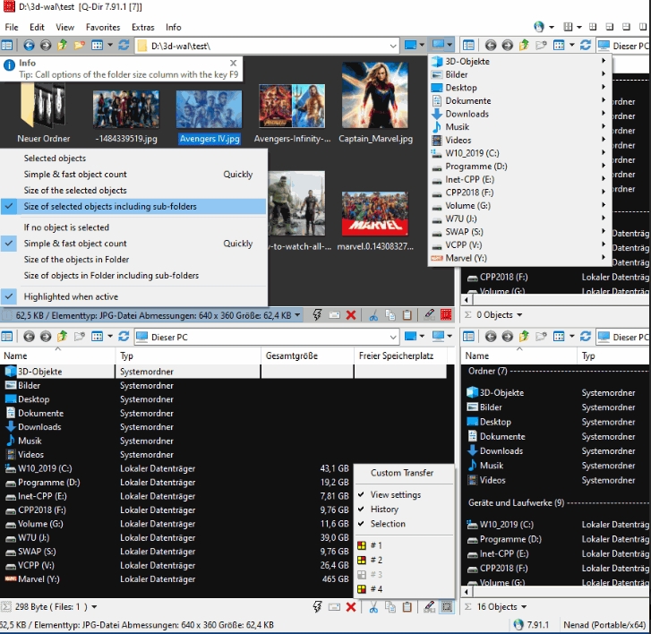 7. Q-Dir의 또 다른 장점은 경로 복사, 즐겨찾기 추가, 파일 필터링 등 일반 파일 탐색기에서 제공하지 않는 고급 기능들을 제공한다는 점입니다. 마우스 우클릭이나 단축키를 활용하면 이러한 기능들을 더욱 빠르게 사용할 수 있습니다.