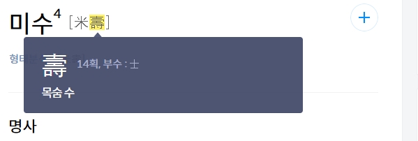 2. 검색창에 ‘미수’라고 입력하시면, 관련된 의미가 바로 나타납니다. 미수는 단순히 숫자 88을 의미하는 것이 아니라, 장수와 축복의 의미를 함께 담고 있는 아주 특별한 단어예요. 옛 어르신들의 삶과 건강을 기리는 말로 지금도 널리 사용되고 있습니다.