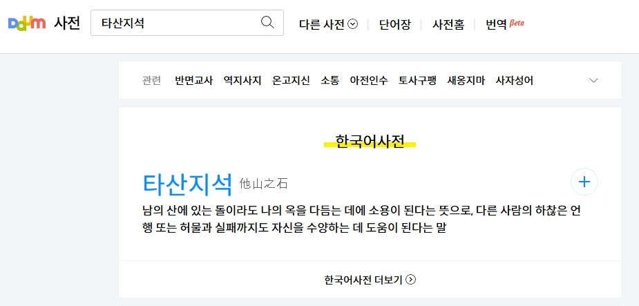 2. 검색창에 타산지석을 입력하면 간단명료하게 뜻이 바로 보여요. 여기서 중요한 건 단순히 뜻만 읽지 말고, 그 속에 담긴 깊은 의미를 생각해보는 거예요. 남의 실수도 내 성장의 밑거름이 된다는 이 말, 평소 생활 속에서 어떻게 적용할 수 있을지 한번 고민해보면 좋겠죠?