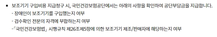 보조기기는 반드시 공단에 등록된 업소에서 구입해야 하며, 보청기 구입 후에는 이비인후과 전문의에게 검수 확인을 받아야 합니다. 보청기 착용 1개월 이후에는 음장검사를 통해 실제 청력 개선 효과가 있는지를 확인해야 하며, 효과가 있다고 판단된 경우에만 급여 지급이 가능합니다.