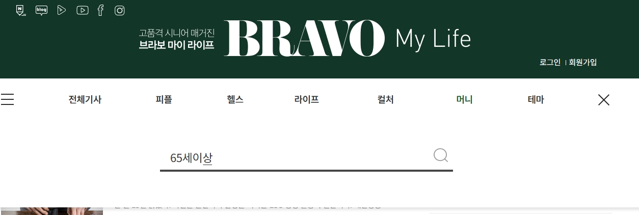 1. 브라보마이라이프 사이트에 접속하세요. 이곳은 시니어 세대를 위해 생활정보, 혜택, 건강 등 다양한 주제를 다루는 온라인 매거진입니다. 연령대에 맞는 알짜배기 정보가 가득해서 꼭 둘러볼 만해요.
