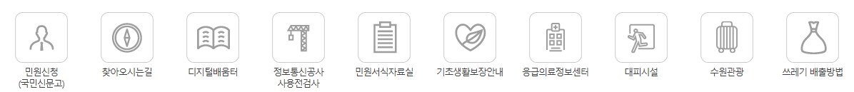 응급 의료, 대피소, 쓰레기 배출 등 생활 밀착형 정보들을 바로가기 버튼으로 제공해 긴급 상황에도 유용하게 활용할 수 있습니다.