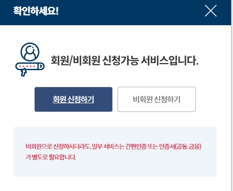 회원가입 없이도 신청이 가능하며, ‘비회원 신청하기’ 버튼을 누르면 약관 동의 후 개인정보 입력만으로 신청할 수 있습니다.