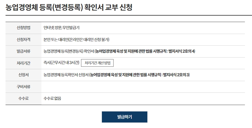 인터넷, 방문, 무인발급기 등 다양한 신청 방법이 있으며, 수수료는 전혀 없습니다. 온라인 발급을 원하신다면 ‘발급하기’ 버튼을 클릭해 절차를 계속 진행하면 됩니다.