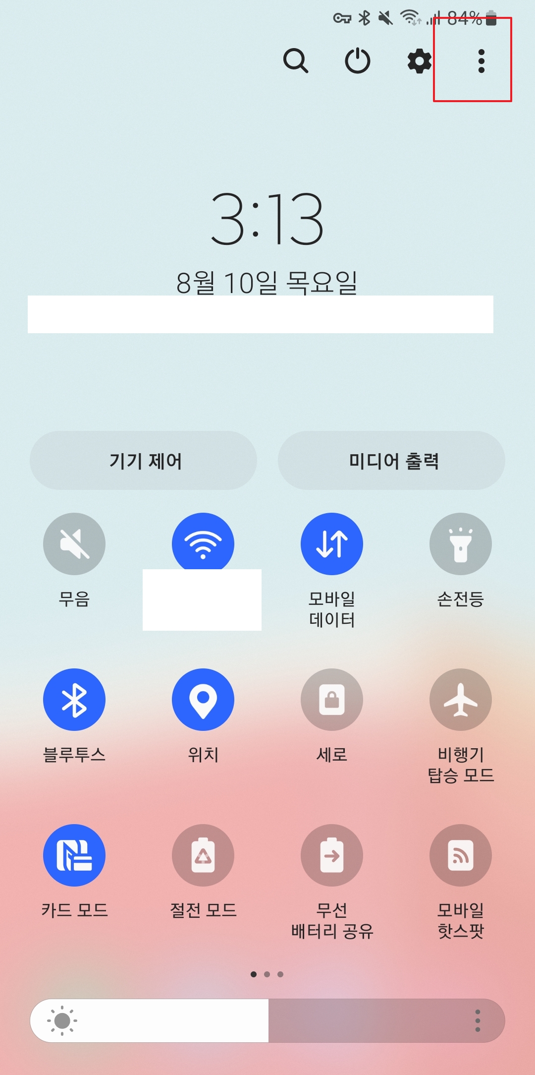 홈 화면에서 위에서 아래로 한 번 쓸어내리면 상단바가 열립니다. 이 기본 단계는 모든 설정 접근의 출발점이 됩니다.