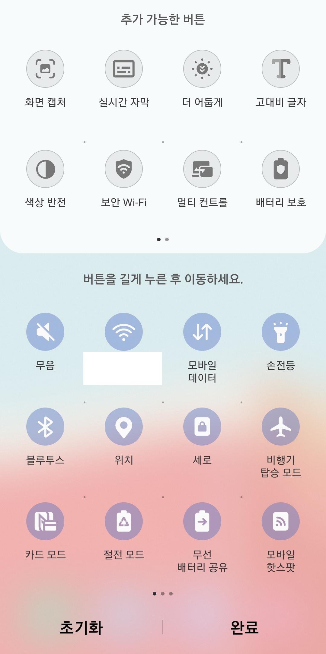 다시 한 번 쓸어내려 상단바를 전체 화면으로 확장합니다. 이렇게 해야 모든 아이콘이 보이게 됩니다.