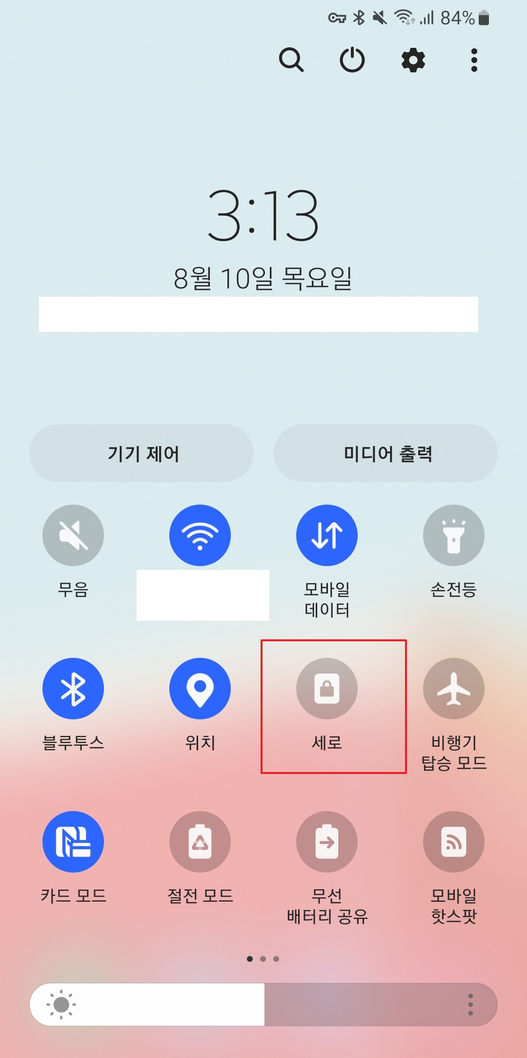 현재 세로 고정 상태라면, 해당 아이콘을 누르면 자동회전으로 전환됩니다. 아이콘에는 ‘세로’라고 표시되어 있습니다.