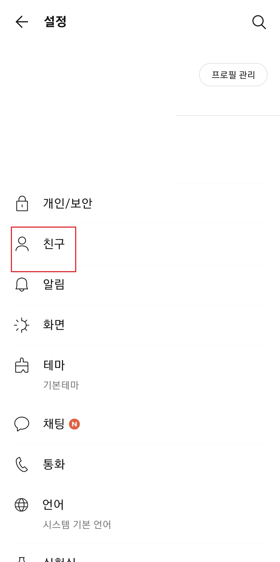 '친구' 메뉴에서 '차단 친구 관리'로 들어가면, 현재 차단된 친구 목록을 확인할 수 있습니다.