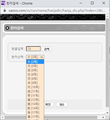 2. 무료 이름풀이 페이지에서 한자 이름풀이 항목을 클릭하면 바로 입력 화면으로 이동합니다. 예를 들어 '홍길동'을 입력해보면 해당 한자 후보가 화면에 리스트로 표시되어 쉽게 선택할 수 있습니다.