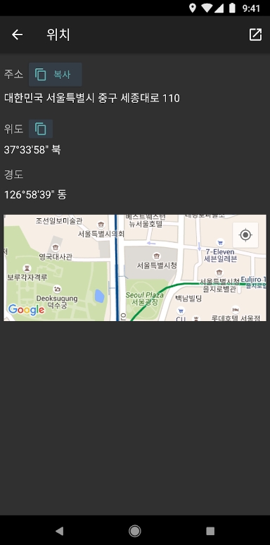 9. 별도의 지도 앱 대신 내장된 나침반 아이콘을 활용할 수도 있습니다. 지도 화면에서 우측 상단의 아이콘을 탭하면 방향이 표시되어 본인의 시선 방향에 맞게 지도를 회전시킬 수 있습니다.