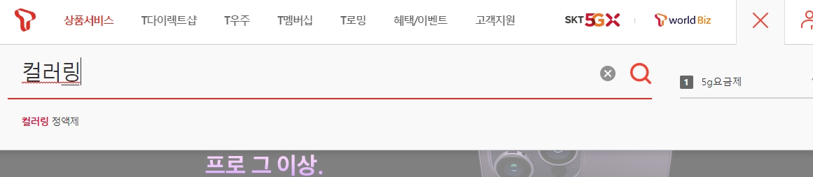 t월드를 검색해서 홈페이지로 들어가야 합니다. 컬러링 설정은 반드시 SK 공식 페이지에서 확인하고 이용하는 게 제일 정확하고 안전하기 때문입니다. 검색창에 't월드'라고만 검색해도 가장 상단에 바로 나오며, 로그인 후 진행하면 더 많은 설정이 가능합니다.