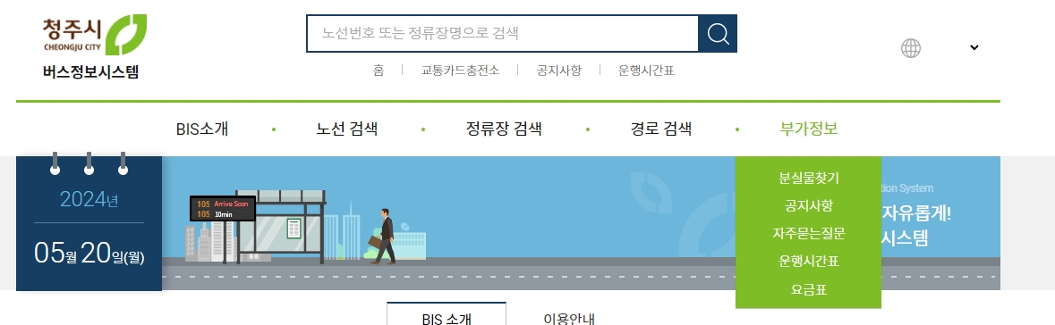 청주 버스정보시스템 홈페이지 (www.dcbis.go.kr)