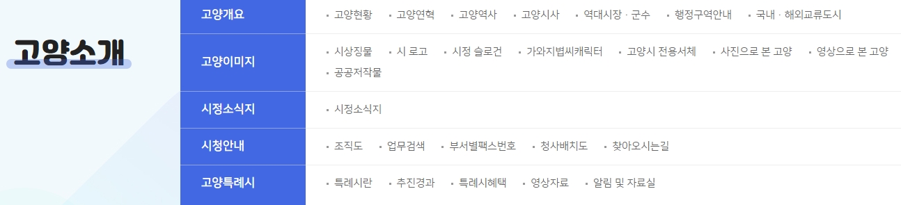 4. 주요 주제별 메뉴는 주민들이 필요로 하는 정보에 빠르게 접근할 수 있도록 설계되어 있어요. 예를 들어, 교통 메뉴에서는 대중교통 노선 정보, 버스 시간표 등을 확인할 수 있으며, 교육 메뉴에서는 고양시 관내 교육 기관 및 프로그램 정보를 쉽게 찾을 수 있습니다. 이러한 세심한 구성은 도시 생활을 보다 편리하게 만들어 줍니다.