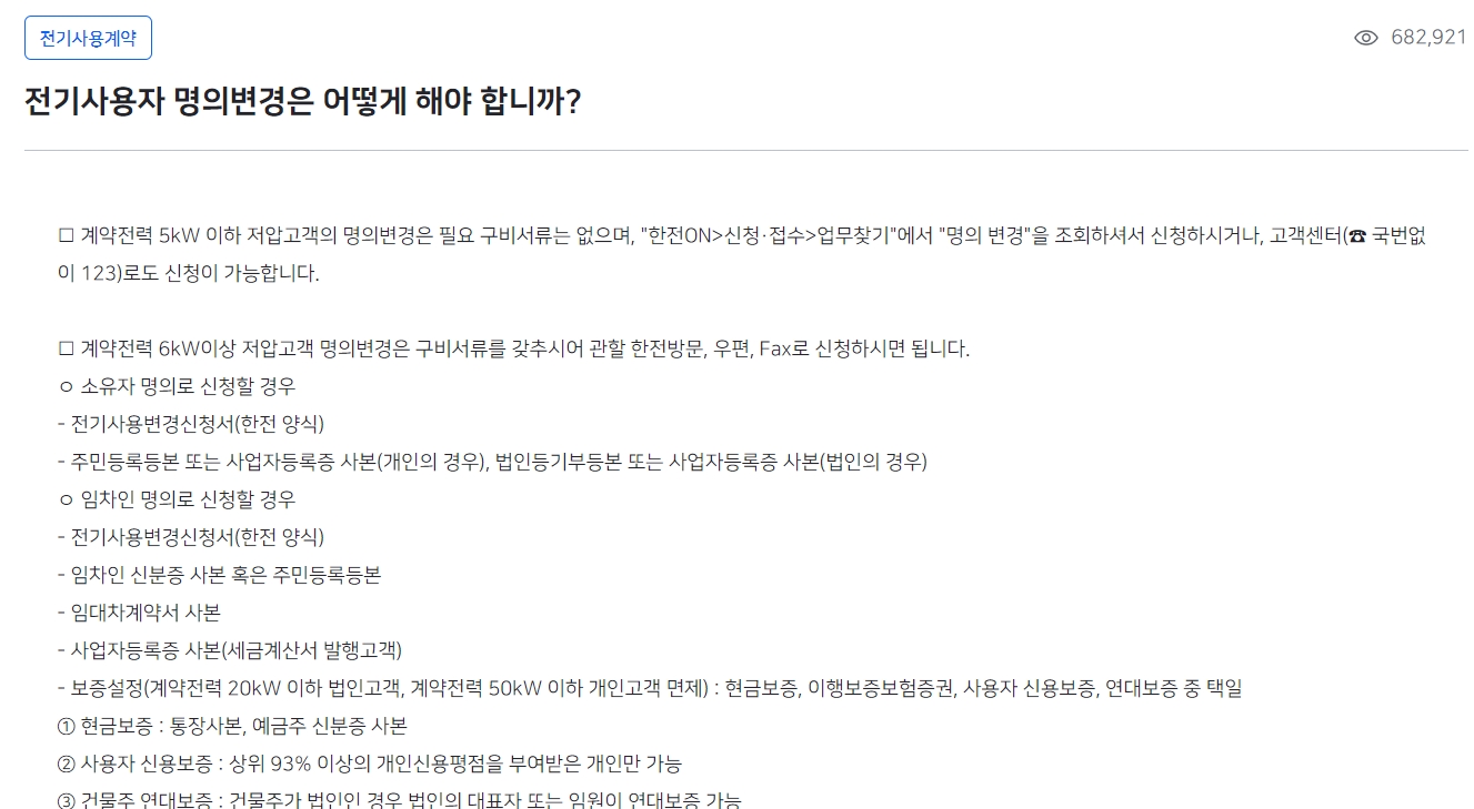 예를 들어서 이사 갔을 때 전기 쓰는 사람 이름을 바꿔야 하잖아요? 그런 명의 변경 방법이라던가, 우리 집 전기요금이 어떻게 계산되는 건지 자세한 방법 같은 것도 여기서 다 알려줘요. 이렇게 하나하나 자세하게 설명이 되어 있으니까, 전기를 쓰는 사람들이 복잡하게 생각하지 않고도 자기 요금을 쉽게 관리할 수 있게 도와주는 거랍니다. 정말 친절하게 안내되어 있어서 처음 하는 사람도 쉽게 따라 할 수 있어요.