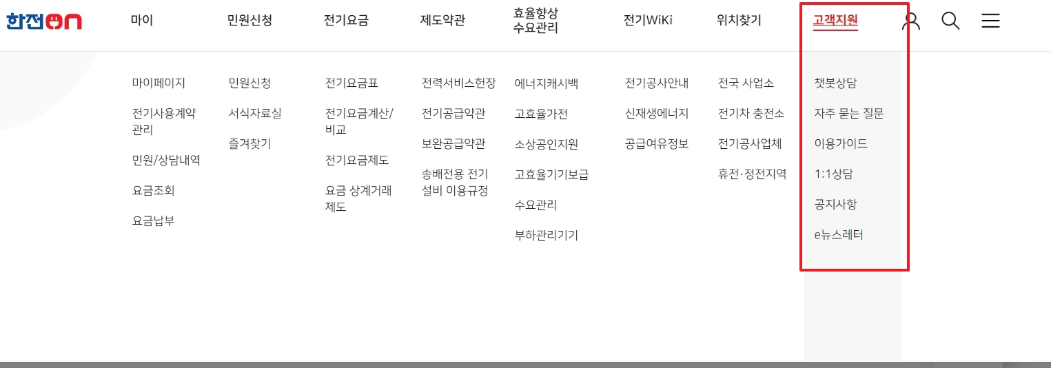 전기요금에 대한 아주 기본적인 것부터 시작해서 좀 특별한 경우에 어떻게 해야 하는지에 대한 설명까지, 정말 많은 정보가 있어서 필요한 내용을 엄청 빨리 찾을 수 있는 장점이 있습니다. 이 메뉴 하나만 잘 살펴봐도 웬만한 궁금증은 해결될 정도입니다.