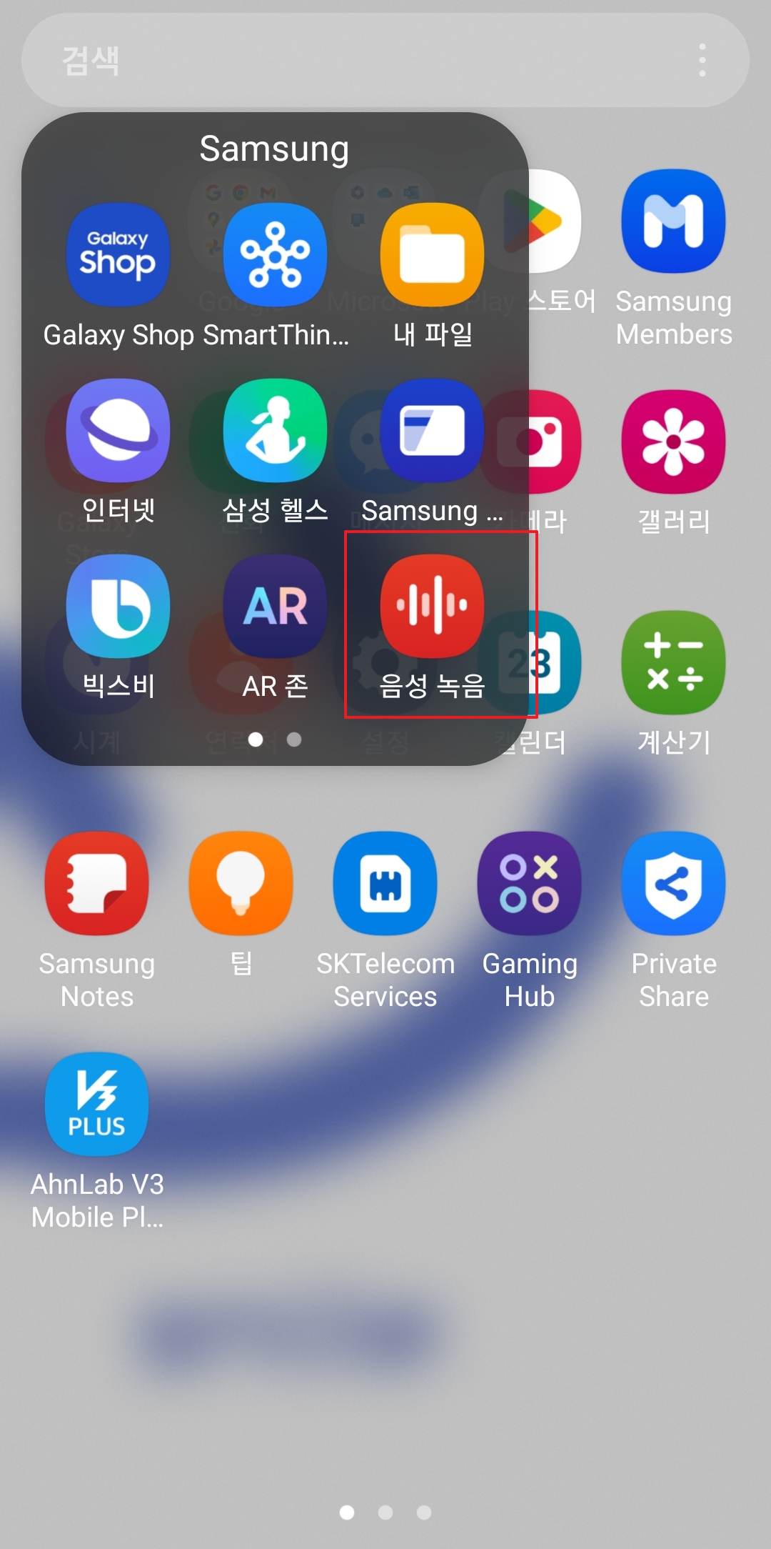 앱 서랍을 열었다면 이제 눈을 크게 뜨고 Samsung(삼성) 폴더를 찾아야 해요. 보통 삼성 휴대폰에는 관련 어플들이 이 폴더 안에 깔끔하게 정리되어 있거든요. 폴더를 찾아서 누르면 그 안에 우리가 찾는 음성 녹음 어플이 보일 거에요. 혹시라도 어플이 보이지 않는다면, 걱정하지 말고 갤럭시 스토어에 들어가서 '음성 녹음'이라고 검색하면 금방 찾아서 설치할 수 있습니다.