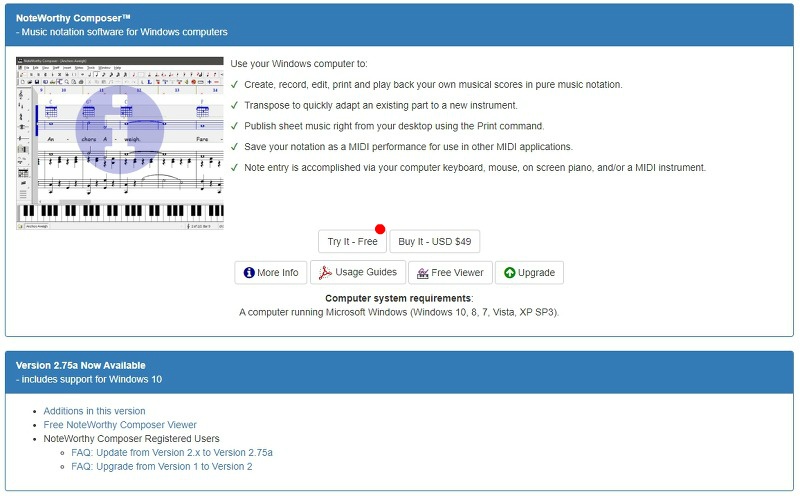 홈페이지에 들어가보면 최신 버전이 2.75버전이라는걸 알 수 있어요. 이 버전은 다행히도 윈도우10 같은 최신 운영체제도 잘 지원한다고 하네요. 화면에 보이는 여러가지 메뉴 중에서 'Try it - Free' 라고 적혀있는 버튼을 눌러주시면 평가판을 받아서 써볼 수 있습니다. 구매하기 전에 한번 사용해보는거죠.