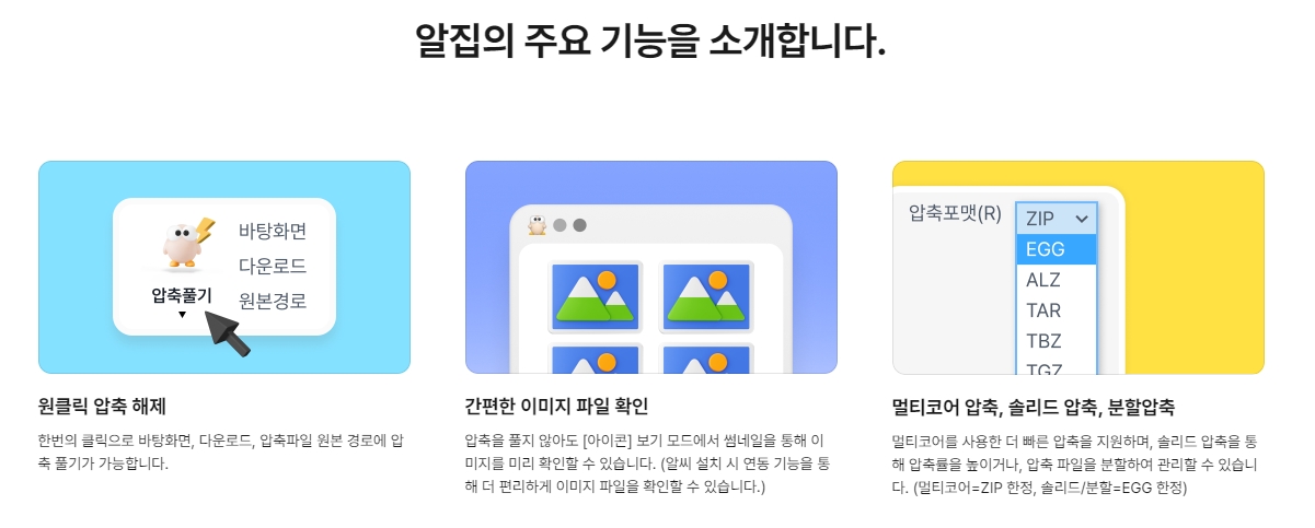 요즘 나오는 압축 프로그램들은 대부분 여러 종류의 압축 파일을 다룰 수 있어요. 예전에는 'egg'나 'alz' 같은 특별한 파일은 알집으로만 열 수 있었던 시절도 있었죠.