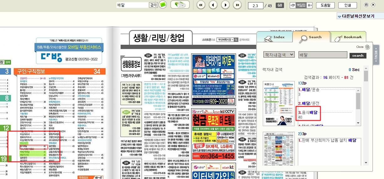 온라인 신문 보기는 종이신문을 한 장씩 넘겨보는 것보다 훨씬 편리한 점이 있습니다. 바로 '검색 기능' 덕분입니다. 예를 들어 '배달' 관련 일자리를 찾는다면, 검색창에 '배달'이라고 입력하기만 하면 됩니다.