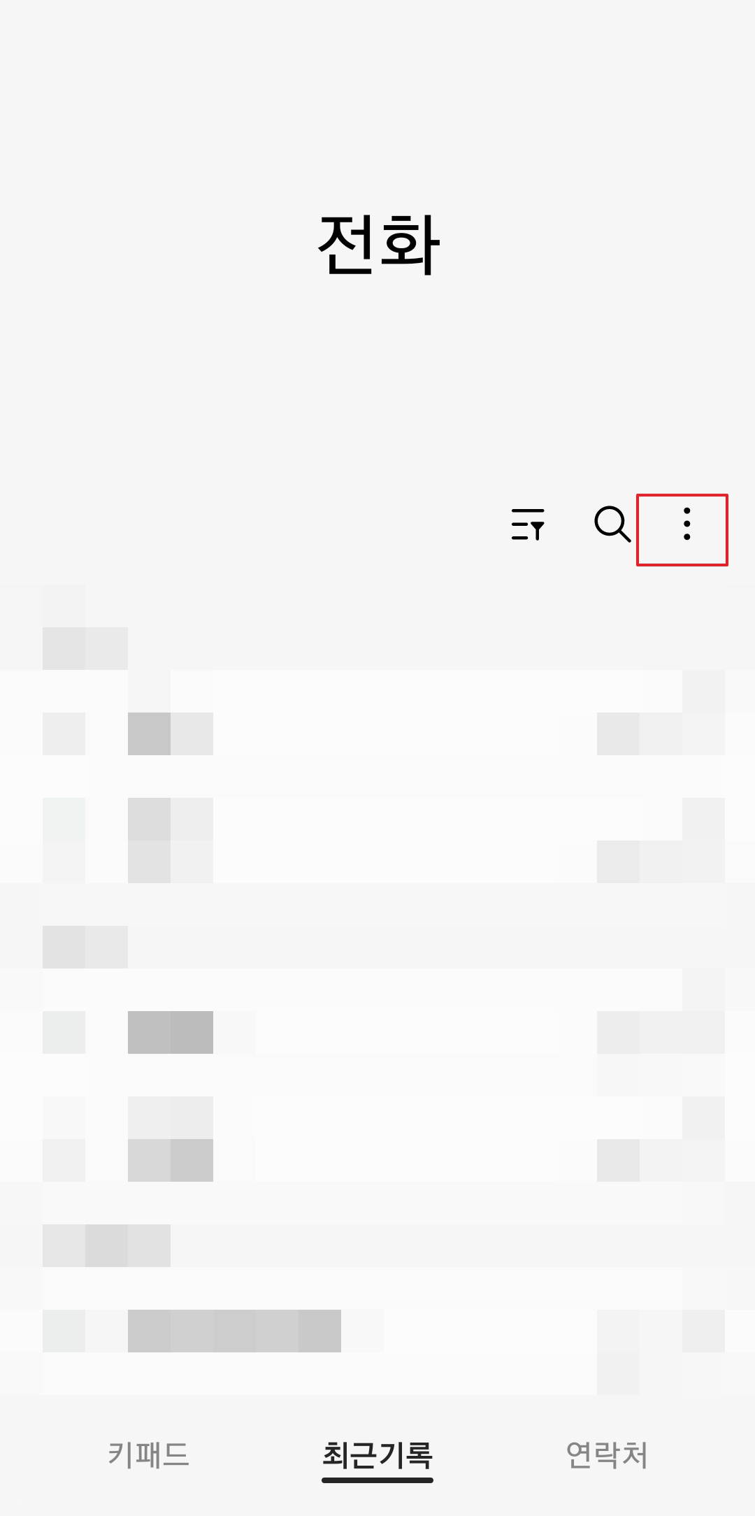 통화 앱을 실행한 뒤에는 하단의 메뉴에서 '최근 기록'을 선택해 주세요. 이곳에서 내가 전화를 걸거나 받았던 모든 번호의 목록을 확인할 수 있습니다. 차단하고 싶은 번호가 있다면 이 목록에서 찾아야 합니다.