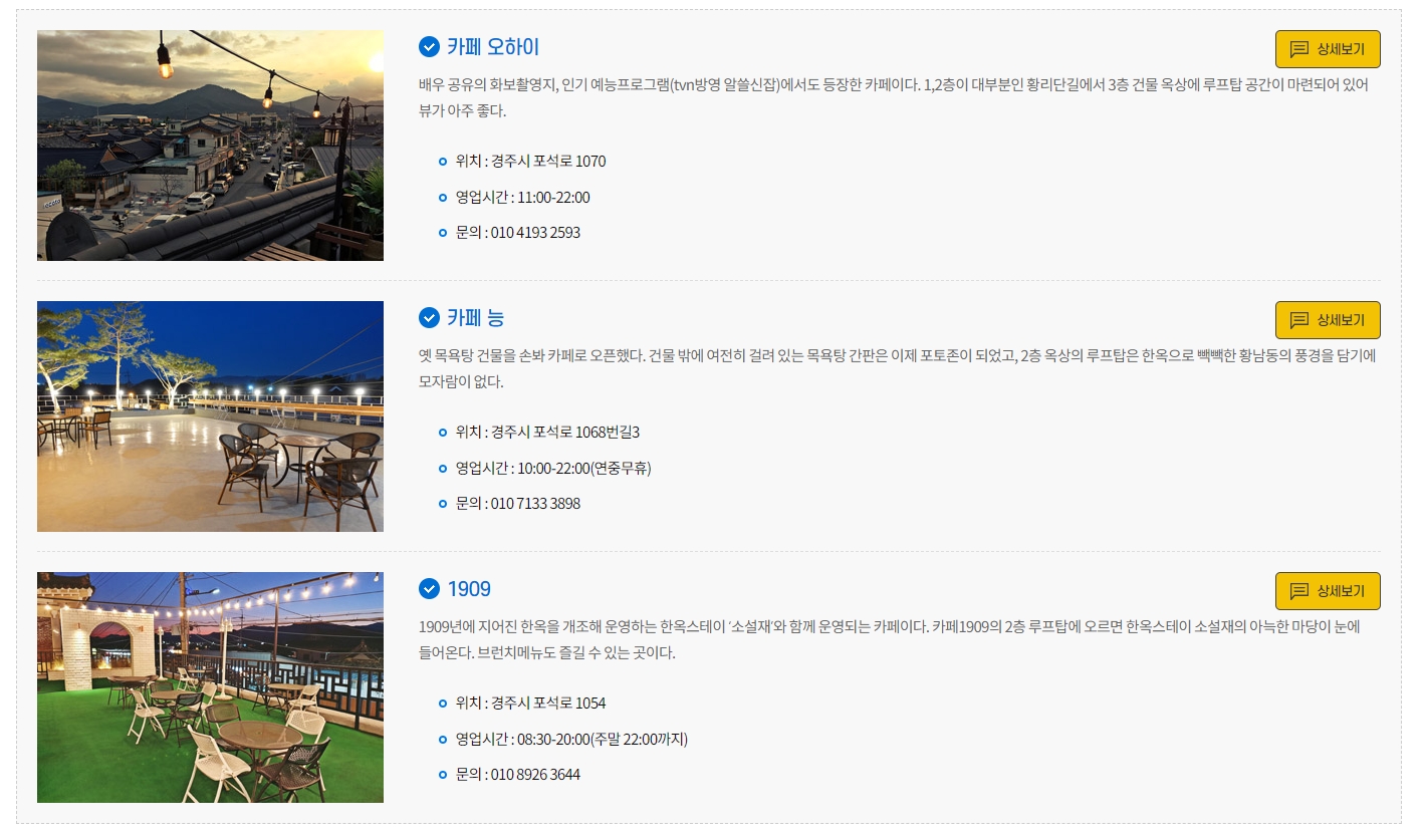 경주 문화관광 페이지는 전통적인 명소뿐만 아니라, 요즘 여행객들의 취향을 반영한 트렌디한 장소 정보도 제공합니다. '감성루프탑'처럼 특별한 분위기를 즐길 수 있는 카페나 음식점 정보도 찾아볼 수 있어요.