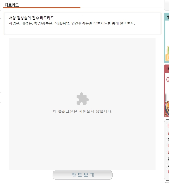 이 다음 화면에서 원래는 카드가 촤르륵 섞이는 애니메이션이 나와야 하는데, 이게 옛날 방식(플래시)이라 요즘엔 그냥 하얀 화면만 뜰 수 있어요. 당황하지 마시고 그냥 '카드 보기' 버튼을 바로 누르시면 돼요.